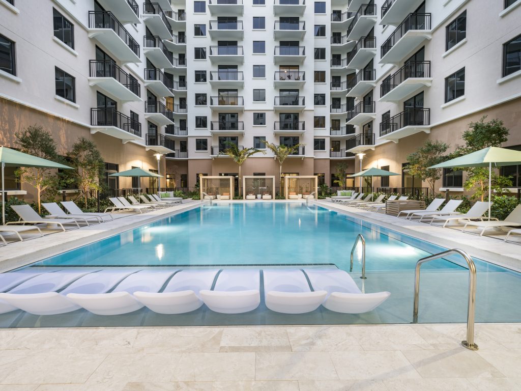 This 8-story, 487,488-GSF development consists of 397 residential units and six commercial units, built around a 9-level, 600-space parking garage that is enclosed by the residential structure. The ground floor features 9,300-SF of retail space. Residents benefit from amenities, including a pool with a deck, a fitness center, and a clubhouse. Each unit includes smart home technology with keyless entry, built-in desks, and shelving. The controlled-access parking garage also includes EV charging stations. Its location near Nova Southeastern University, HCA Florida University Hospital, and Fort Lauderdale-Hollywood International Airport makes it a highly accessible housing option.