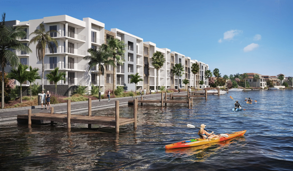 This development in Delray Beach is comprised of two residential properties. The south building is a 5-story, 264,794-SF structure with a ground-level covered parking structure providing 225 spaces. The second floor features the lobby and a terrace with an elevated pool, spa, fitness center, and clubhouse. The remaining floors above the garage accommodate 156 residential units.